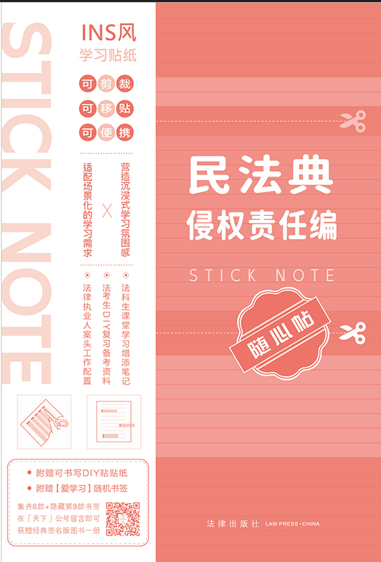 "本書立意于打破法律學(xué)習(xí)的枯燥沉悶,創(chuàng)意設(shè)計可剪裁、可移貼、可便攜的創(chuàng)意口袋學(xué)習(xí)本,治愈的多巴胺色彩、隨心適配的便捷自在,營造沉浸式學(xué)習(xí)氛圍感。
